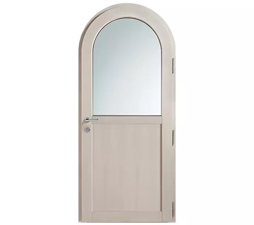 Portes d'entrée bois-aluminium cintrées : découvrez les portes d'entrée en bois-alu. Performance UD 0.91. Porte d'entrée facile à entretenir. Vitrage sécurité et serrure 6 points à relevage. Configurations multiples en plein cintre, cintre surbaissé, plein cintre avec traverse haute droite et en cintre surbaissé avec traverse haute droite. Un large choix de couleur, de finitions bois et d'accessoires. -