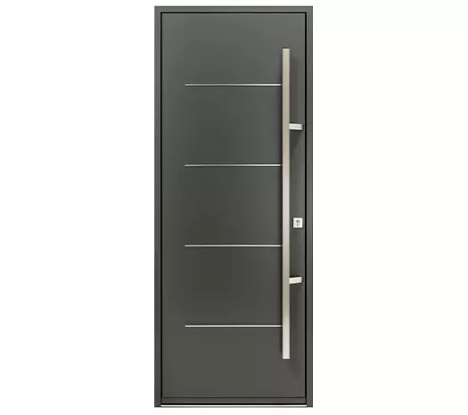 Portes d’entrée aluminium 85 mm : l’élégance contemporaine dans ses moindres détails. Une esthétique raffinée avec usinage 3D au relief subtil, joncs en laiton brossé et lignes épurées pour une signature visuelle audacieuse, affirmant le caractère unique de votre entrée.