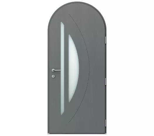 Portes d'entrée bois-aluminium cintrées : découvrez les portes d'entrée en bois-alu. Performance UD 0.91. Porte d'entrée facile à entretenir. Vitrage sécurité et serrure 6 points à relevage. Configurations multiples en plein cintre, cintre surbaissé, plein cintre avec traverse haute droite et en cintre surbaissé avec traverse haute droite. Un large choix de couleur, de finitions bois et d'accessoires. -